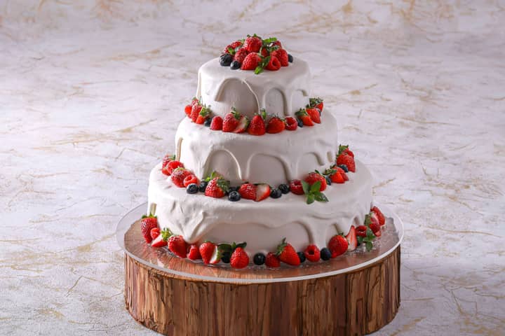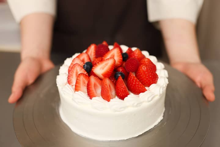 1~3段まで、形も自由に。飾りのフルーツや表面のクリームの絞り方もセレクトできるし、ショートケーキ以外でも作成可能。もちろんクッキープレートやマジパン、リボンなどの小物のアレンジも◎