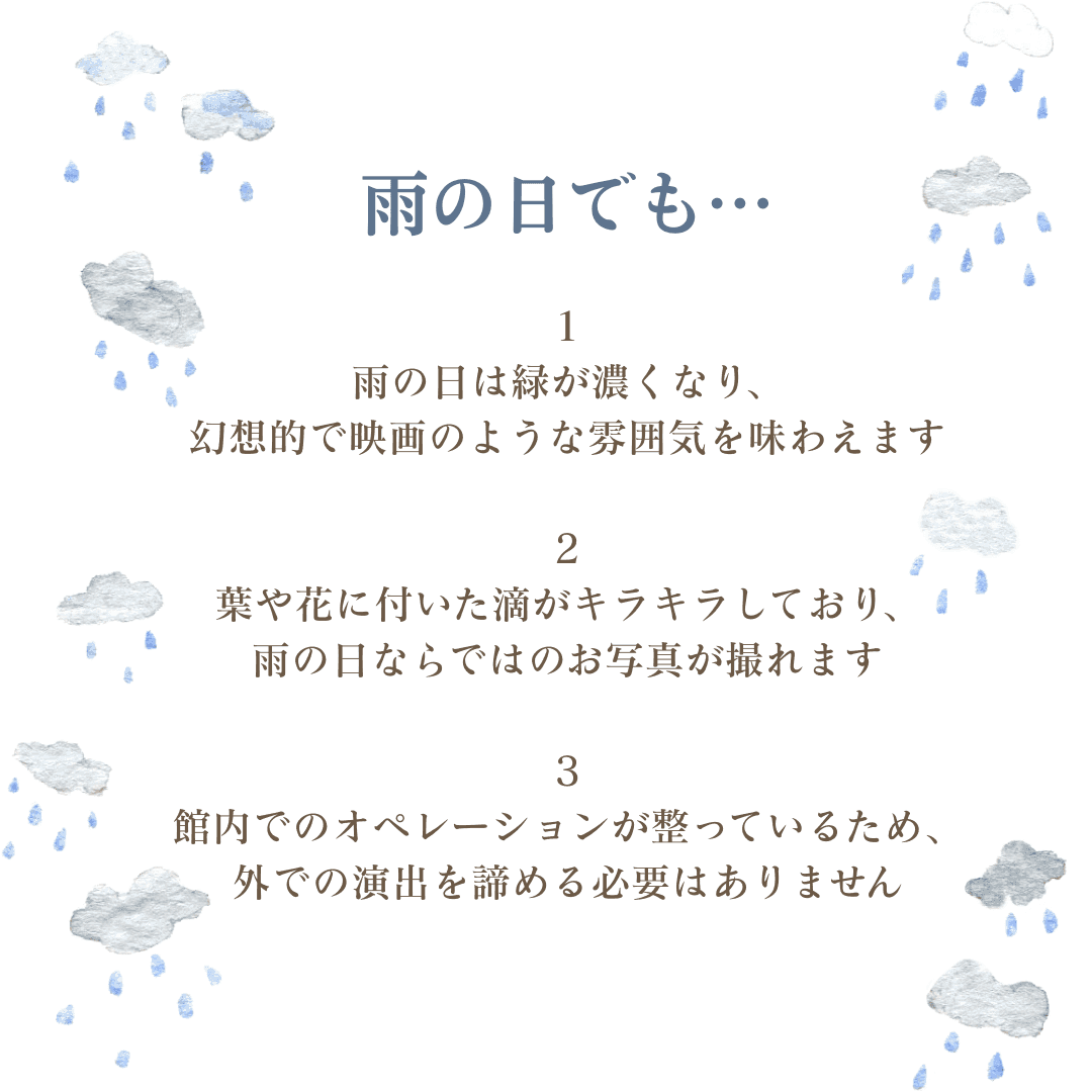 どんな天気でも、自然の彩りが祝福の舞台に変わる…